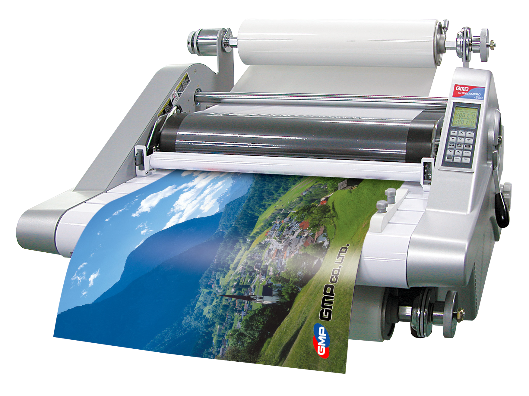 This machine is designed for offices and copy shops in need of commercial laminating operations. With variable speed and temperature control capable of running at 7 meters per minute. The machine can handle all low melt films up to 500 micron with the combination of the heat shoes & hot roller system. De-curling device for single side lamination suitable for OPP Laminating and Encapsulation.